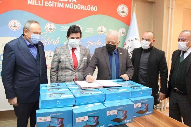 Törende konuşan İl Milli Eğitim Müdürü Dr. Abdülaziz Yeniyol ise salgın sürecinde tablet ya da bilgisayarları olmadığı için uzaktan eğitime katılma imkânı bulamayan öğrencilere yapılan bu desteği çok değerli bulduğunu belirterek, destek veren Türkiye Odalar ve Borsalar Birliği, Yalova Ticaret ve Sanayi Odası’nın Yönetimlerine ve üyelerine duyarlılıklarından dolayı teşekkürlerini dile getirdi. Yalova Ticaret ve Sanayi Odası adına konuşan YTSO Başkanı Tahsin Becan ise, bir ülkenin gelişmişlik seviyesinden söz ederken en önemli kriterlerden birinin eğitim olduğunu belirterek, bu kapsamda TOBB, Oda ve Borsalarca yapılan bu bağışı çok önemsediğini dile getirdi. Bir ülkenin geleceğine yapılacak en önemli yatırımın gençlerin eğitimine sağlanacak destek olduğunu belirten Becan, bu kapsamda TOBB ve Odaların katkısı ile 55 adet klavyeli tableti geleceğin teminatı gençlere ulaştıracak olmanın mutluluğunu yaşadıklarını söyledi.