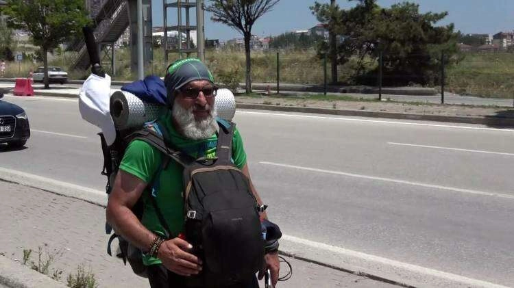"Yoğun olmayan yağmurlarda şemsiyemle yürüyebiliyorum. Günde 35 ile 50 kilometre arası yürüyebiliyorum. Yüküm olmasa belki biraz daha fazla yürürüm ama bazen yolun durumu da etken olabiliyor."