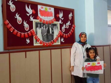 Atatürk İlkokulu 4/İ sınıfı Dilek Yayık öğrencileri Cumhuriyetin kuruluşunun 92. Yıldönümü dolayısıyla okulu Türk Bayrakları ve Atatürk resimleriyle donattılar.