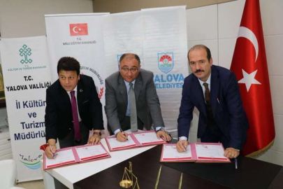 Yalova İl Milli Eğitim Müdürü Ali Tosun, Yalova Belediye Başkanı Vefa Salman ve İl Kültür Turizm Müdürü Şeref Tali, ‘Öğrenciler Sinema ile Buluşuyor’ protokolü imzaladı.