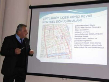 Çiftlikköy’de Köy içi Kentsel Dönüşüm Projesi’yle ilgili olarak gerçekleştirilen toplantıda konuşan Belediye Başkanı Metin Dağ, vatandaşlar istemediği sürece bu bölgede kentsel dönüşümle ilgili bir çalışma yapılmasının mümkün olmadığını söyledi.