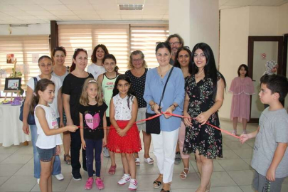 Çiftlikköylü minik ressamlar yaz kursu boyunca yaptıkları resimleri gerçekleştirilen sergide beğeniye sundular.