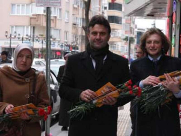 Ak Parti Yalova Milletvekili aday adayı Bayram Ali Yılmaz 8 Mart Dünya Kadınlar Gününde bayanları unutmayarak onlara karanfil hediye etti.
