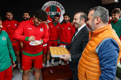 Bölgesel Amatör Lig (BAL) 8. Bölge 2. Grupta hiç yenilgisiz lider olan Yalovasporlu futbolcuları Pazar günü oynayacakları Ayvalıkgücü Belediyespor maçı öncesinde ziyaret eden Yalova Belediye Başkan Vekili Mustafa Tutuk futbolcu ve teknik ekibe baklava ikram etti.