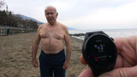 Yalova’nın Çınarcık ilçesine bağlı Esenköy beldesinde 19 yıldır yaz kış demeden denize giren 77 yaşındaki Adem Tüccar, herkesin şaşkın bakışları arasında buz gibi sularda kulaç atıyor.