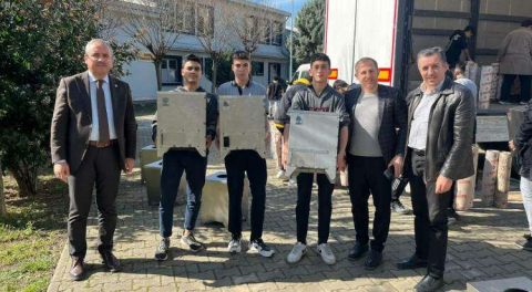 Şehit Sercan Yazar Mesleki ve Teknik Anadolu Lisesi öğretmen ve öğrencileri tarafından üretilen 320 adet soba, deprem bölgesindeki vatandaşlara gönderildi.
