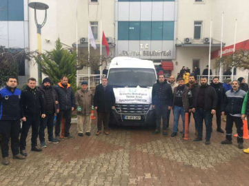 Ardından 10 personel ve 2 iş makinesinden oluşan Armultu kafilesi dualar eşliğinde deprem bölgesine doğru yola çıktılar.