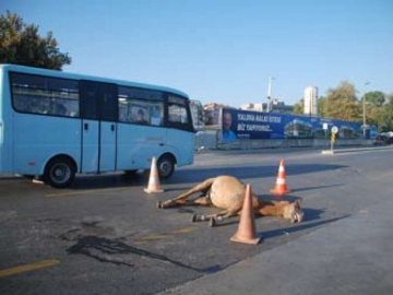 Başıboş bir at İDO terminalinin yan tarafında bulunan minibüs terminalinin ön tarafında bilinmeyen bir nedenle yola yığılarak can verdi. Çevredeki vatandaşları tüm aramalarına rağmen yolun ortasında saatlerce bekletilen at trafiği tehlikeye soktu.