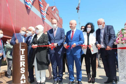 Karaismailoğlu, Tersan Tersanesi Yönetim Kurulu Başkanı Osman Nurettin Paksu ve Rusya Federasyonu firması yetkileriyle gemiyi denize indiren kurdeleyi kesti.