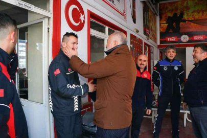 Çiftlikköy’de itfaiye hizmetlerinin en modern şekilde yapılabilmesi için tüm desteğin verileceğini dile getiren Başkan Silpagar, “İlk işimiz itfaiye binamızı modern bir şekilde yapmak. Çiftlikköy’de yüz bin, iki yüz bin nüfusa yakışacak şekilde itfaiye binamız yapılacak. Benim gördüğüm kadarıyla personel ihtiyacımız yeterli değil, takviye yapacağız. Bunun mülakatlarını da siz yapacaksınız. Çünkü ben burada işinin ehli, liyakat sahibi çalışanları istiyorum. Burada amirimiz de belirttiği gibi, köpek arama kurtarma ekibimiz yok, köpekler alınacak. 30 yıl hizmet verecek şekilde, çünkü bunun birkaç yılı eğitimle geçecek. Sismik dinleme aletimiz yokmuş o derhal temin edilecek. Termal ısı kameralarımız modernize edilecek. Son teknoloji ile gelecek. Bu saate kadar sizleri seviyordum sayıyordum, bu saatten sonra artık abi kardeş olduk. Yaşım kaç olursa olsun, yaşadığım sürece abi kardeşiz. Bu yaptığınızı hiçbir şekilde unutmamız mümkün değil. Peygamberimizin ümmeti olarak insanlığa nasıl hizmet ettiğinizi de gördüm. Kuran-ı Kerim'deki Tevbe süresinde belirtildiği gibi, malınızla canınızla cihat edin. Evet, malınızla canınızla deprem arama kurtarmada, Maraş’ta, Hatay’da, Adıyaman’da, on ilimizde canla başla çalıştınız. Bizim görev bölgemiz Hatay, Antakya’ydı. İnşallah Hatay Antakya bölgemizde Ramazan ayında orada yine sizden ve bizden aşçılar, garsonlar şeklinde güzel bir yemek olarak bulunalım. Orada iftarı ve sahuru karşılayalım. Hizmet ettiğimiz yerde bu hizmetimize devam edelim. İnşallah hizmetimizi arttırarak devam ettirmemiz gerekiyor. Arama kurtarma dışında da Çiftlikköy Belediyesi, hizmetlerini arttırarak devam edecek. Şu anda daha büyük bir cihatın içindeyiz” dedi. Bölgeye giden ekiptekilerin orada yaşadıklarını anlattığı ziyarette duygusal anlar yaşandı. Başkan Silpagar, itfaiye binasından ayrılırken, itfaiye personeli ile tek tek kucaklaşarak teşekkürlerini dile getirdi.
