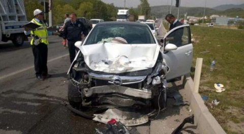 Alınan bilgiye göre, Yalova-Kocaeli karayolu Yalova Devlet Hastanesi köprülü kavşağı mevkisinden Yalova kent merkezine giden Mutlu Narlı idaresindeki 77 EN 222 plakalı otomobil ile önünde seyreden ve direksiyon hakimiyetini kaybeden Yaşar Türk idaresindeki 77 DR 414 plakalı otomobil çarpıştı. Çarpışmanın etkisiyle Türk'ün idaresindeki otomobil takla attı. Kazada yaralanan otomobil sürücüleri ile Türk'ün aracındaki Ayhan Orhan yaralandı. Takla atan araçtan Yalova itfaiye ekiplerince çıkartılan Türk ve Orhan 112 acil servis ekiplerince Yalova Devlet Hastanesine, Narlı ise kent merkezindeki özel bir hastaneye kaldırıldı. Kocaeli-Yalova karayolunda trafik bir süre kontrollü sağlandı.