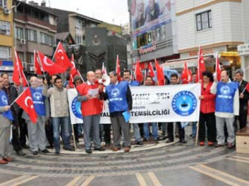 Türkiye Kamusen Yalova Şubesi Demokratikleşme Paketi'nin Uğur Mumcu Kültür Merkezi önünde düzenlenen basın açıklaması ile protesto etti. Açıklamayı Türkiye Kamusen Yalova Şubesi Başkanı Mustafa Deviren yaptı. Açıklamada, "Demokrasi ve özgürlükle uzaktan yakından ilgisi olmayan, 76 milyon vatandaşımızın ortak ihtiyaçlarını karşılamak yerine terör örgütünün taleplerini hayata geçirmeyi amaçlayan şüpheli bir paketle karşı karşıyayız. Bugün burada bir kez daha tarihe not düşmek adına toplanmış bulunuyoruz. Yıllardır yürütülen kampanyalarla bizleri bir arada tutan tarihi ve kutsal kavramlarımızın içi boşaltılmak, inanç değerlerimiz yıpratılmak, milli ve manevi değerlerimiz yozlaştırılmak istenmekte; milletimizin ve devletimizin geleceği üzerinde kirli bir oyun oynanmaktadır. Bu oyunun son sahnesi ise demokratikleşme paketi adı altında, Türk milletine dayatılan baldıran zehri olmuştur. Bu paketle, 30 yıl boyunca ülkemizi bir kan gölüne çeviren eli kanlı bebek katillerinin ana dilde eğitim talebi, özel okullarda hayat bulmakta, bölücülerin çok dilli toplum hayali, Hükümet eliyle gerçekleştirilmektedir. Bununla ana dilde eğitim, terör örgütünün müktesebatına geçirilmekte, milletimizin arasındaki iletişim koparılmak istenilmektedir. Alfabemizde olmayan harflerin kullanılmaya başlamasının ve isteyen herkesin her dilde eğitim yapabilmesinin ardından gidilen yol, çok dilli, çok milletli, çok başlı, bölünmüş bir Türkiye’ye çıkmaktadır. Bu yol, dilde ayrışma, iş’te ayrışma, fikirde ayrışma ve nihayetinde hedefte ayrışma yoludur. Bu paketle, Türk coğrafyasında yaşayan tüm vatandaşlarımızı bir arada tutan ve ortak bir amaç etrafında kenetlenmemizi sağlayan üst kimliğimiz “Türklük” yok edilmek istenilmekte, bu doğrultuda her sabah okullarda okutulan “Öğrenci Andı” kaldırılmakta, “Ne mutlu Türküm diyene” diyenler susturulmaktadır. Bu paketle bölücü klavyelere özgürlük, birleştirici dillere pranga vurulmaktadır. Türküm”le başlayan, doğruyumla devam eden bir andın kaldırılması, ancak Türk olmayan ve doğru olmayan insanları memnun etmek için atılmış bir adım olacaktır. Türkiye Cumhuriyeti sınırları içinde çocuklarımızın Türküm” demesi, doğruyum demesi, çalışkanım demesi kimleri, neden rahatsız etmektedir? Bundan ancak, Türklük şuurundan uzak, Türklerle tarihi bir hesaplaşma peşinde koşanlar rahatsız olur. Biz bunların kim olduğunu çok iyi biliyoruz. Bu şüpheli paketten çıkan bir başka tuzak ise siyasi partilere üye olma yasağının kaldırılması konusunda yaşanmaktadır. Başbakan, Siyasi Partiler Kanunundaki, siyasi partilere üye olmayı yasaklayan bütün maddelerin kaldırılacağını beyan etmiştir. Halihazırda terör eyleminden dolayı mahkûm olanların siyasi partilere üye olması yasaktır. Bu yasağın kalkması, siyasi partilere eş başkanlık sisteminin getirilmesi ile birlikte değerlendirildiğinde bebek katilinin, bir partiye eş başkan olarak siyasete atılmasının önünü açacak bir uygulama olacaktır. Demokratikleşme paketi adı altında açılan, aslında Pandora’nın Kutusu’dur. Bu paket, Türklüğün ve Türk milletinin geleceğine döşenen mayınlarla doludur. Bu paketle, tüm milletimizin yasağın kaldırılması yönünde hem fikir olduğu ve hemen uygulamaya geçilmesi mümkün olan, kadınlarımızın inançlarının bir gereği olarak örtündüğü başörtüsü konusu, PKK’nın kirli talepleri ile aynı potada değerlendirilerek siyasi emellere alet edilmekte, kirli taleplerin üzeri örtülmektedir. Bu paketle, terör örgütünün talepleri 76 milyon vatandaşımızın ortak taleplerine tercih edilmekte, bebek katilleriyle yapılan pazarlıklarda verilen sözler, tüm milletimizin arzusuymuş gibi gösterilmektedir. İktidar, 30 yıldır milletimizi ve devletimizi bölmek isteyenlere karşı yürütülen mücadelede geri adım atmış, adeta terör örgütüne teslim olmuştur. Bir süredir milli kimliğimizin, birlik ve beraberliğimizin bütün unsurları teker teker imha edilmekte, bizi biz yapan değerlerimiz dejenerasyona uğratılarak tarihe gömülmek istenmektedir. Aziz Türk milleti, tarih boyunca yaşamadığı bir zillete maruz bırakılmakta, esaret dönemlerinde bile görülmemiş bir kültürel soykırıma tabi tutulmaktadır. Demokrasi kisvesi altında, demokrasi katledilmekte, milletimizin sinesine yerleştirilen ayrışma, bölünme ve kopma virüsü alabildiğine beslenip, büyütülmektedir.Yılladır gizliden gizliye yürütülen Türk milletini tarihinden koparma ve milli kimliğini unutturma politikası bu paketle gün yüzüne çıkmış, kapalı kapılar ardında terör örgütüne verilen kirli sözlerin büyük bir kısmı bu paketle hayat bulmuştur" sözlerine yer verdi