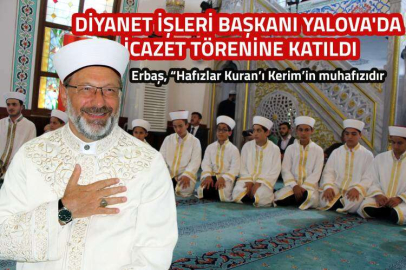 Diyanet İşleri Başkanı Prof. Dr. Ali Erbaş, Yalova Müftülüğü Adalı Hafız Ahmet Hızal Yatılı Erkek Kuran Kursu’nda yetişen 22 hafız için düzenlenen İcazet merasimine katıldı. Burada konuşan Diyanet İşleri Başkanı Erbaş, “Hafızlarımız Kuran’ın muhafızlarıdır.” dedi