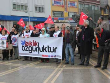 Uğur Mumcu Kültür Merkezi önünde toplanan Eğitim-İş sendikası üyeleri ellerinde, "Laiklik Özgürlüktür" yazılı pankart taşıdılar. 3 Mart 1924 yılında kabul edilen yasaların arasında Laikliğin de bulunduğunu dile getirerek bir basın açıklaması yapan Eğitim_iş Sendikası Yalova Şubesi Başkanı Mustafa Aşina, "Bugün gerici düzenleme ve uygulamalarıyla laik eğitime darbe vuran AKP iktidarı, dindar ve kindar nesil yetiştirme hedefine uygun olarak dini eğitimi yaygınlaştırmaya hızla devam etmektedir. AKP iktidarının hedefi öğrencileri cemaatlerin ve tarikatların kucağına iterek çağdaş, bilimsel, akılcı, laik eğitim sistemini ortadan kaldırmaktır. Karma eğitime son verilmesi durumunda Atatürk'ün liderliğinde kurulan cumhuriyetin en önemli kazanımlarından olan ve milli eğitimde birliği esas alan Tevhid-i Tedrisat ortadan kaldırılacak ve tekrar çok başlı eğitim sistemine dönülecektir. Eğitim-İş, tüzüğümüzde de belirtildiği üzere Atatürk ilke ve devrimleri ile Türkiye Cumhuriyeti'nin laiklik ilkesi üzerinde yükseldiğinin bilinciyle laiklik ilkesinin korunmasına büyük önem verir. Bu amaçla AKP iktidarının bilimsel, laik, ulusal ve demokratik eğitimi tasfiye etme girişimlerine karşı başta Eğitim-İş üyesi öğretmenler olmak üzere tüm öğretmenler, 3 Devrim Yasası'nın kabulünün 91. yıl dönümü olan bugün yakalarına Laiklik Özgürlüktür sloganının bulunduğu kokartları takarak, Eğitim-İş tarafından hazırlanan ders planı dahilinde bulundukları okullarda ilk ders saatinde laiklik konusunu anlattı" diye konuştu. Eğitim-İş Sendikası üyeleri açıklamanın ardından sloganlar attıktan sonra dağıldılar.