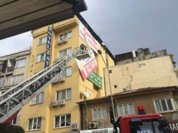 Lodos fırtınasının etkili olduğu Yalova’da Mimar Sinan Caddesi ile Cumhuriyet Caddesi’nin kesiştiği noktada bulunan binada büyük reklam panolarının bağlantı yerlerinden ayrılması polis ve itfaiye ekiplerini harekete geçirdi. Çevrede polis ekiplerinin önlem almasının ardından olay yerine gelen itfaiye erleri vatandaşların meraklı bakışlarının arasında tabelayı indirdiler.