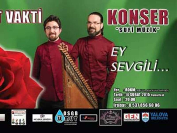 "Ey Sevgili" adlı konserde sufi müziğin en güzel örneklerine yer verilecek. Hasat Vakti adlı Sufi müzik grubu 14 Şubat 2015 Cumartesi günü saat 20:00'de RDKM'de bir konser düzenleyecek. "Ey Sevgili" adlı konser aynı anda grubun 1. kuruluş yıldönümü kutlaması da olacak. Konsere tüm vatandaşları davet eden Hasat Vakti grubu kurucusu Serkan Güven, "Uzun yıllardır çeşitli oluşumların içinde yer alarak sürdürdüğümüz müzik yolculuğumuzu Hasat Vakti adıyla devam ettirmeye başlayalı tam bir yıl dolmuş olacak. Yalova'mızın medarı iftiharı olma gayretiyle çalışmalarını sürdüren Hasat Vakti olarak 1. yaş günümüzü de kutlayacağımız bu özel konserde halkımızın yanı sıra şehrimizdeki siyaset dünyasından, bürokratlardan, akademisyenlerden, üniversitemiz camiasından, sağlık ve spor dünyasından birçok değerimizi de konserimize davet ettik. Bu güne kadar yaptığımız hiç bir etkinliğe sizleri davet etmemiş olmanın mahcubiyeti ile sizlerden özür diliyor ve Hasat Vakti için çok önem arz eden 'Ey Sevgili' adlı Sufi müzik konserimize siz değerli basın dünyasını davet ediyoruz" dedi.