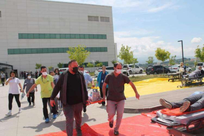 Yalova Eğitim ve Araştırma Hastanesi’nde deprem tatbikatı yapıldı. Tatbikatta senaryo gereği 6.9 şiddetinde deprem meydana geldi ve hastane tahliye edildi.