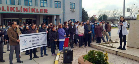 Bu kapsamda Yalova Aile Hekimleri Derneği’ne üye hekimler Yalova Devlet Hastanesi bahçesinde toplanarak bir basın açıklaması gerçekleştirdiler. Haklarının ve maaşlarının güncellenmesini isteyen hekimler açıklamada şu detaylara yer verdiler, “Biz hekimler en zor sınavlardan üstün başarılar göstererek, gecesini gündüzüne katıp, tıp ilmini öğrenmek için gençliğini feda etmiş, hastalara şifa vermek için uzun ve zorlu eğitimlerden geçerek mesleğini yapmaya hak kazanmış, ilmini ardından gelen tıbbiyelilere aktarmak için ölene kadar okumuş ve okutmuş ülkenin en fedakar ve en çalışkan çocuklarıyız. Bizler özlük hakları sürekli elinden alınan. Her gün hakarete, şiddete ve darba maruz kalan, dövülen, sövülen, canına kastedilen ve sonunda öldürülenleriz. Biz canımız pahasına hastanın olduğu her cephede, salgında, savaşta, en ön safhada bir asker gibi çalışanlarız. Biz özveri ile mesleğimizi idame ettirmeye çalışırken, ‘Giderlerse gitsinler’ denilmeyi hak edecek ne yaptık. Biz sadece sağlıkta şiddete yönelik olayların caydırıcı olmasını, CMK’ya eklenmesini ve TCK’da katalog suçlara dahil edilmesini istiyoruz. 36 saatlik mesai yasaklanmalıdır. 36 saat mesainin tespiti hakkında sorumlular hakkında idari ve adli tahkikat yapılmalıdır. Hekimlerin çalışma koşulları insan ve çalışan koşullarına göre yeniden düzenlenmelidir. Hekimlerin görüşü alınarak kapsamlı reformlar gerçekleştirilmelidir. Mobing’e karşı acilen caydırıcı önlemler alınarak, Mobing’e maruz kalan kişiler korunmalıdır. Hak edilenin çok altında olan maaşlar ve emekli aylıkları hakkaniyetli bir şekilde hiçbir performans kriterine bağlanmadan güncellenmelidir”