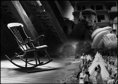 Henüz çadırlar kurulamamıştı. Belediyemiz iş makinalarıyla taşkın riskli, önlemli alan olan bu arazideki su taşkınına engel olmak için var gücüyle çalışıyordu. Elimde ailemin fotoğrafıyla birlikte kaldırım kenarına yığıldım’