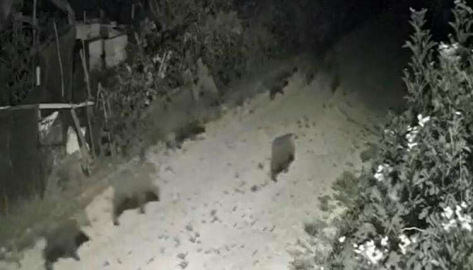Köye İnen Domuz Sürüsü Güvenlik Kamerasına Yakalandı