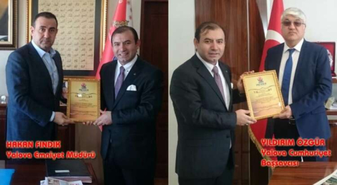 Milli irade ve Demokrasi Derneği (MİDDER) Yalova İl Başkanı Eser Çapadağ, Yalova Cumhuriyet Başsavcısı Yıldırım Özgür ve Yalova Emniyet müdürü Hakan Fındık'ı makamlarında ziyaret ederek onursal üyelik plaketlerini sundu.