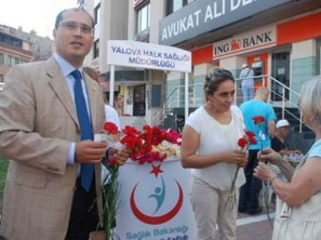 Yalova Halk Sağlığı İl Müdürü Dr. İbrahim Dedecan bugün Raif Dinçkök Kültür Merkezi'nde düzenlenecek olan, "Sağlıkta İletişim, Sağlıklı İletişim" paneli öncesi Uğur Mumcu Kültür Merkezi önünde vatandaşlara karanfil dağıttı.