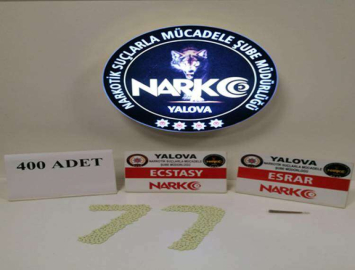Narkotik Suçlarla Mücadele Şube Müdürlüğü, Teknik Takip ve Analiz Büro Amirliği ile birlikte yapılan yol denetimleri esnasında şüpheli davranışlar sergileyen M.B adlı şahsın kullandığı 26 plakalı aracı durduruldu. Sürücü M.B ve araçta yapılan aramada 400 adet Ecstasy hap ve 1.38 gram Esrar maddesi ele geçirildi. Yine Çiftlikköy ilçesinde durdurulan 41 plakalı araçta bulunan A.Ç, V.Y ve A.B’nin üzerlerinde ve araçlarında yapılan aramada ise; 6.18 gram Metamfetamin maddesi, 1 adet tabanca, 1 adet şarjör, 4 adet fişek, 1 adet sentetik ecza grubu tablet hap, 1 Adet Uyuşturucu madde içiminde kullanılan Cam Aparat ele geçirildi. Ekipler İstanbul istikametinden gelerek Yalova yönüne giden 34 plakalı bir araçta daha arama yaptılar. Bu araçta bulunan Y.Ş, F.K ve E.G adlı şahısların üzerlerinden ise 7.95 gram Metmfetamin maddesi ele geçirildi. Şahıslar haklarında düzenlenen evraklarla adliyeye sevk edildiler.