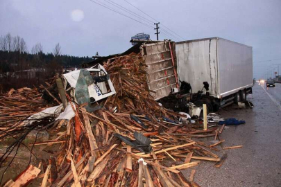 Yalova’da tahta yüklü kamyona arkadan çarpan diğer bir kamyonun sürücüsü tahtaların vücuduna saplanması sonrasında feci şekilde can verdi.