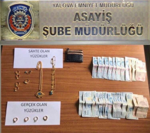 Yalova’nın İstanbul Caddesi üzerinde bulunan bir kuyumcuya giden 2 şahıs kuyumcudan tek taş yüzük almak istediklerini söylediler. Bu esnada şahıslardan birisi kuyumcuyu sorularla ve yüzükleri deneyerek oyalarken diğer şahıs ise gözüne kestirdiği 4 adet yüzüğü sahteleri ile değiştirdi. Ardından yüzükleri beğenmediklerini dile getiren şahıslar işletmeden çıktılar. Kuyumcu yüzükleri değiştirirken 4 adet yüzüğün sahte olduğunu fark ederek durumu polise bildirdiler. Bunun üzerine kuyumcunun güvenlik kamerasından şahısların görüntülerine ulaşan polis kısa süre içerisinde eşkalleri belirledi. Ardından mobese kameraları yardımı ile şahısların izini sürmeye başlayan Yalova Emniyet Müdürlüğü Asayiş Şubesi ekipleri D.D adlı bayan ve C.Z adlı şahsın Çınarcık ilçesinde bir eve girdiklerini tespit ederek düğmeye bastı. Belirlenen adrese operasyon düzenleyen ekipler şahısları saklandıkları evde kıskıvrak yakaladılar. Sahteleri ile değiştirilen 4 adet tek taş yüzük ve 2 bin 635 TL para da evde ele geçirilerek kuyumcuya teslim edildi. Sorgularının ardından adliyeye sevk edilen şahıslar tutuklanarak cezaevine gönderildiler.