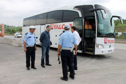 Yalova Emniyet Müdürlüğü Trafik Denetleme Şubesi otobüslere bindirdiği sivil bir memuru sayesinde şoförlerin yol boyunca yaptıkları hata ve kural ihlallerini tespit ediyor.