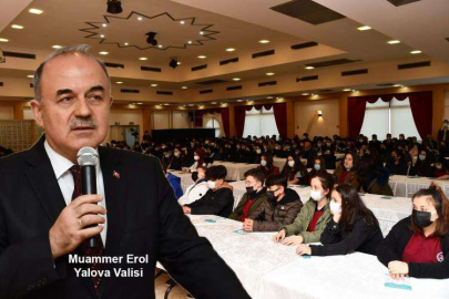 Konuşmanın ardından programa katılan öğrencilerin sorularını da cevaplandıran Yalova Valisi Muammer Erol, onlarla uzun uzun sohbet etti.