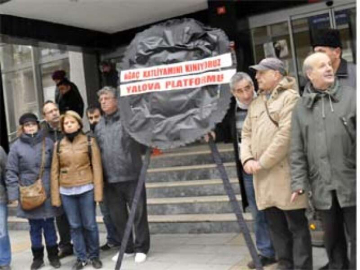 Platform üyeleri Yalova Belediyesi önüne siyah çelenk bıraktı.