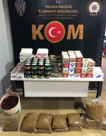Yalova Emniyet Müdürlüğü Kaçakçılık ve Organize Suçlarla Mücadele Şubesi il genelinde gerçekleştirilen operasyonla kaçak tütün ve makaron ele geçirildi.
