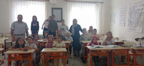 Ardından yaz kuran kurslarına katılıp 6 hafta boyunca eğitim alan ve Kur’an-ı Kerim okumayı öğrenen çocuklara belgeleri dağıtıldı. Çocuklar belgelerini Dr. İhsan Kara ve Betül Balıkçı’nın elinden aldılar.