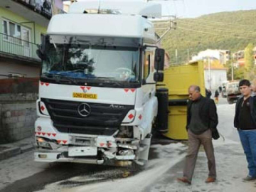 Sürücü kontrolden çıkan TIR’ı yolun alt kısmında bulunan evlere girmekten son anda kurtardı. Bu sırada evlerden birinin önündeki doğalgaz kutusu ve boruları parçalandı. Sabah saat 08:30 sıralarında meydana gelen kazada gürültüyle yataklarından fırlayan mahalle sakinleri büyük panik yaşadı.