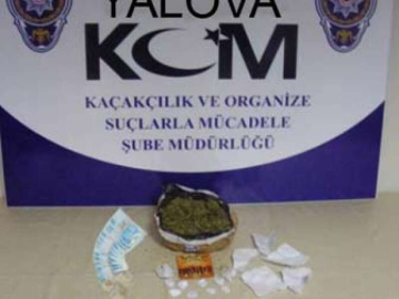 Yalova Emniyet Müdürlüğü Kaçakçılı ve Organize Suçlarla Mücadele ekipleri bir eve yaptıkları baskında esrar ve sentetik uyuşturucu madde ele geçirdi. Olayla ilgili 1 kişi gözlatına alındı.