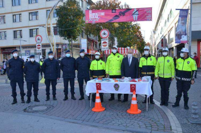 Yapılan denetimin ardından Vali Erol’a emniyetin trafik birimleri tarafından kullanılan materyaller tanıtıldı.