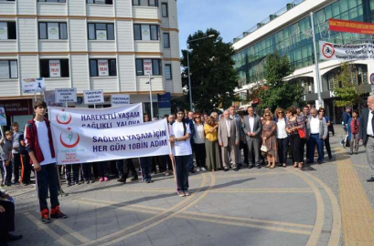 Yürüyüş boyunca öğrenciler ellerinde pankartlar taşırken sağlık çalışanları da vatandaşlara hareketliliğin sağlık üzerindeki önemini anlatmayı ihmal etmediler.