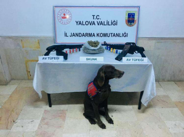 Yalova’nın Çınarcık ilçesinde hassas burun narkoköpek Venüs’ün de katılımı ile yapılan bir operasyonda 870 gram Skunk, 1 kilo kenevir tohumu 1 adet pompalı tüfek ele geçirildi. Olayla ilgili bir kişi gözaltına alındı.